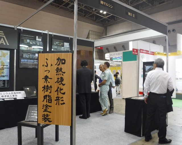 アルミニウム合金材料工場塗装工業会(ABA)のブースの中、賛助会員の(株)三王と(株)マルシンが共同参加出展いたしました。期間中はたくさんの方々に来場いただきありがとうございました。
