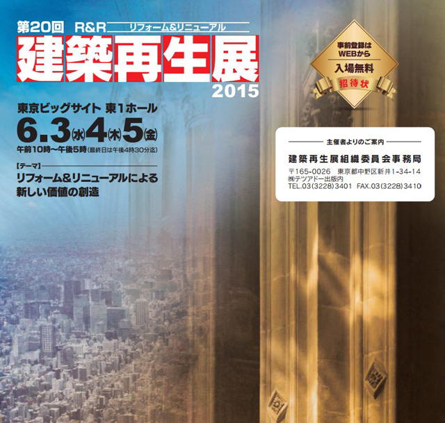 6月の3日(水)・4日(木)5日(金)東京ビッグサイト東1ホールにて第20回R&R建築再生展2015が開催されました。