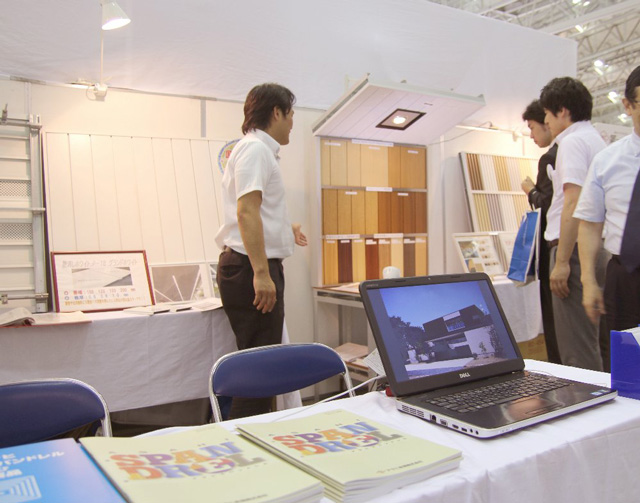 7月3日(金)4日(土)、幕張メッセ 9~11ホールにてユアサ商事様後援"産業とくらしのグランドフェア"が開催され、外装資材/金属建材/建築金物エリア内アサヒ金属様ブースにて、スパンドレル商品の中、マルシンのフッ素木目調塗装の製品が紹介されました。