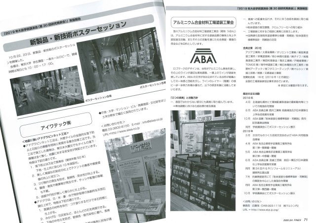 2020年3月4日 日本建築仕上学会 学会誌ポスターセッション2019の記事掲載 日本建築仕上学会 学会誌FINEX2020.MAR./APR. Vol.32 №189 「2019年大会学術講演会(第30回研究発表会)」実施報告にて 新製品・新技術ポスターセッションの記事が紹介されました。