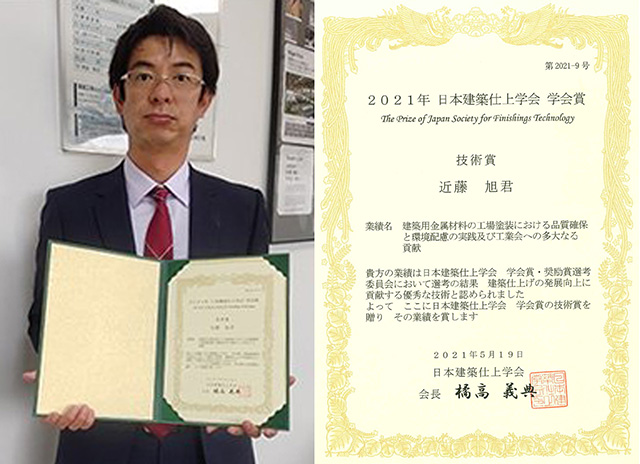 2021年日本建築仕上学会よりマルシン近藤旭社長学会賞技術賞を受賞いたしました。
