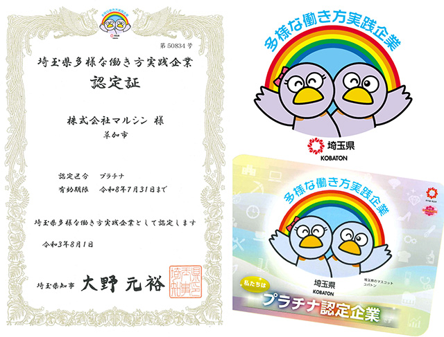 多様な働き方実践企業認定制度~埼玉版ウーマノミクスサイト~にてプラチナ企業に認定されました。